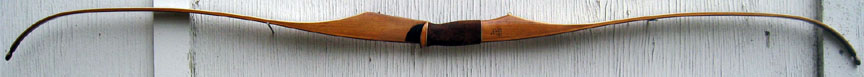 At the time of its introduction in the Spring of 1953 the St. Charles Thunderbird recurve was truly unique in its design. By the Spring of 1957 nearly all recurve bows in production mirrored the Thunderbird's basic short limb long riser style. A little over 300 of the original Thunderbirds were produced 1952 through 1954, during which time the basic bow went through a variety of minor variations. The example shown below featured a light walnut rider and was built in 1954.